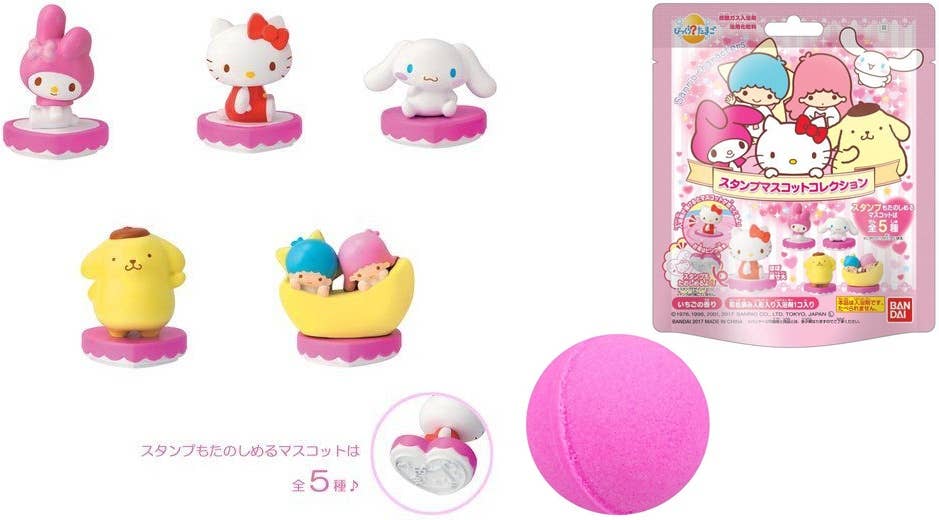 Make bath time relaxing and fun with Sanrio friends! Place the bath ball in water, and when it disolves, it will reveal one of the following six mascot stamps:
